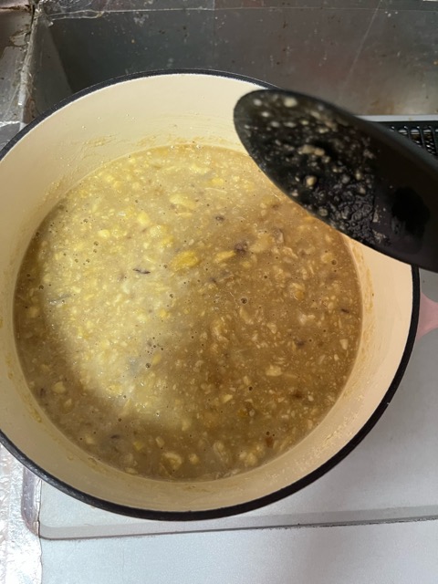⑦鍋に入れたまま、ブレンダーを突っ込んでウィンウィンやればペースト状になります!