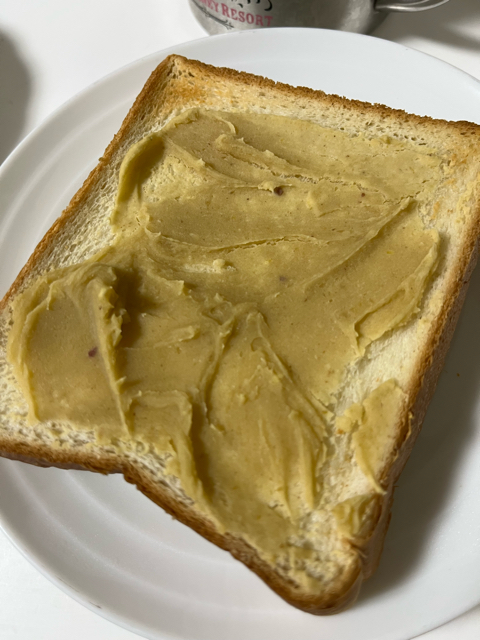 こんがり焼けた食パンにしっかり塗って食べると、ご褒美朝食♪