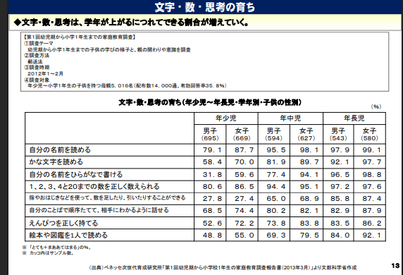 いまは、年長で90%以上が、ひらがなを読める・自分の名前がかけるデータもあります。